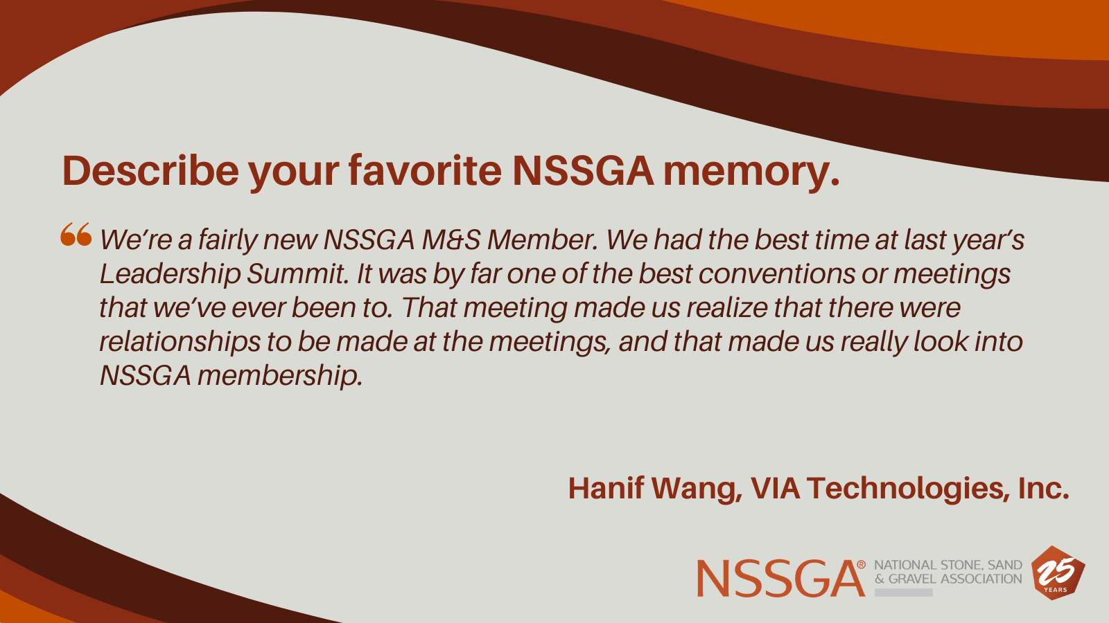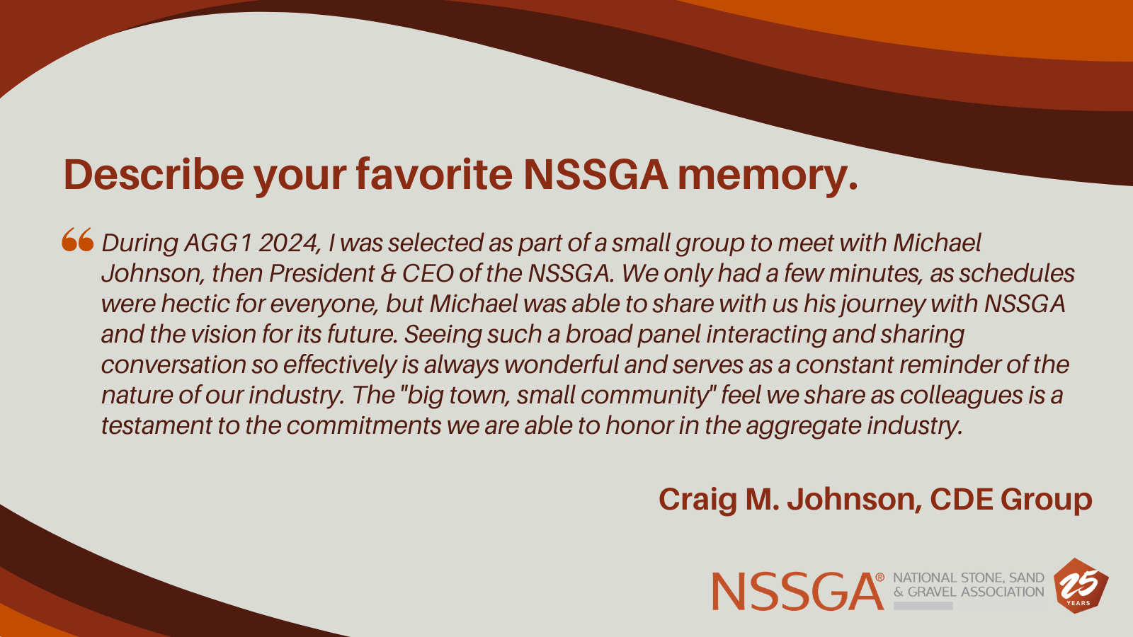NSSGA invites you to join us in making October into ROCKtober. Throughout the month, we’ll be sharing resources and information about NSSGA and the aggregates industry. That is why this year, we’re focusing on the theme "NSSGA: Showing How We Are Part of Your Life." Whether that's how the association has impacted a member of the industry, or how aggregates build our national infrastructure, aggregates are a part of everyone's life!